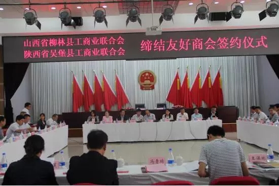 在所有参会人员的见证下,柳林县工商业联合会主席(总商会会长)曹建军、吴堡县工商业联合会主席(总商会会长)周香梅进行了缔结友好商会签约。