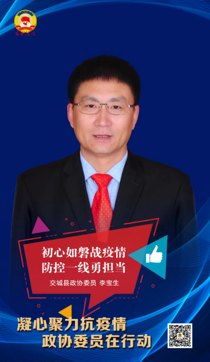 在抗击疫情这场没有硝烟的战斗中,交城县各级政协组织、广大政协委员视疫情为命令、防控为责任,凝心聚力各尽所能,以实际行动参与、助力疫情防控阻击战。作为政协委员的李宝生又投入到了政协组织的疫情防控斗争中来。献计献策、捐资捐物,抗击疫情,李宝生不甘落后。在参与村两委捐款1000元的基础上,李宝生又以政协委员的身份带头捐款1000元。同时,他还充分发挥自身的专长优势,积极围绕疫情防控、企业用工、物流配送等话题建言献策,为疫情防控贡献着自己的一份力量。