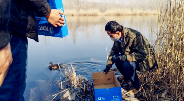 随着疫情持续蔓延,野生动物保护工作也变得更加繁重,但武晋洲没有任何怨言,在防控疫情的同时仍然坚持奋斗在野生动物保护战线。春节刚过,协会再次启动了野生动物保护行动,上山观察野生动物活动轨迹、下河割除张挂的网具,深入湿地保护候鸟迁徙......大年初二当天,武晋洲和队友在李家庄走访摸排疫情途中,发现一只受伤的国家二级保护动物红隼,随即带回开展救治,目前恢复良好;正月初六接到群众举报后,在南辛安村成功救助一只国家二级保护动物雌鸳鸯。为了防止疫情二次传播,对于鸟类后续处置,武晋洲也想得十分周到,他们会把伤鸟及时送到湿地公园救助站,待其伤愈可以飞翔能够适应野外生存能力时,再将其放归大自然。