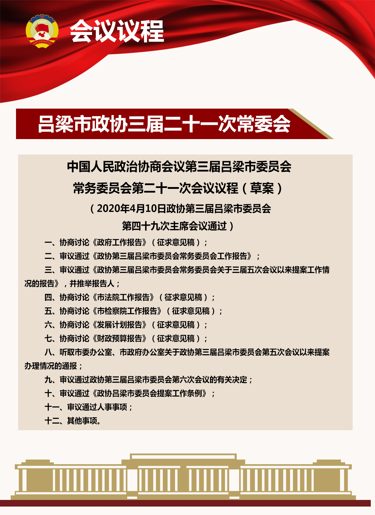 中国人民政治协商会议第三届吕梁市委员会常务委员会第二十一次会议会议日程