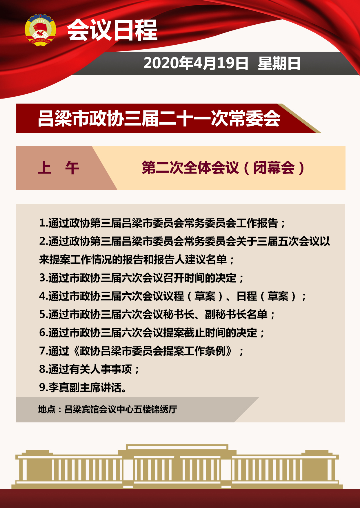 中国人民政治协商会议第三届吕梁市委员会常务委员会第二十一次会议会议日程