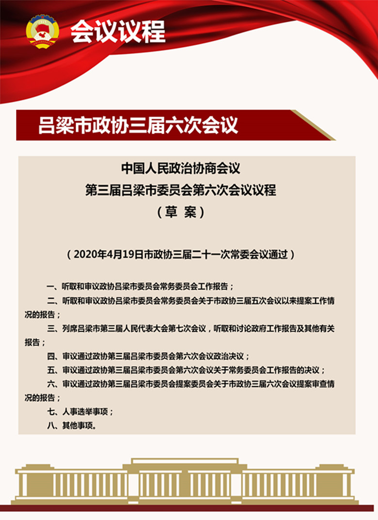 中国人民政治协商会议第三届吕梁市委员会第六次会议会议议程