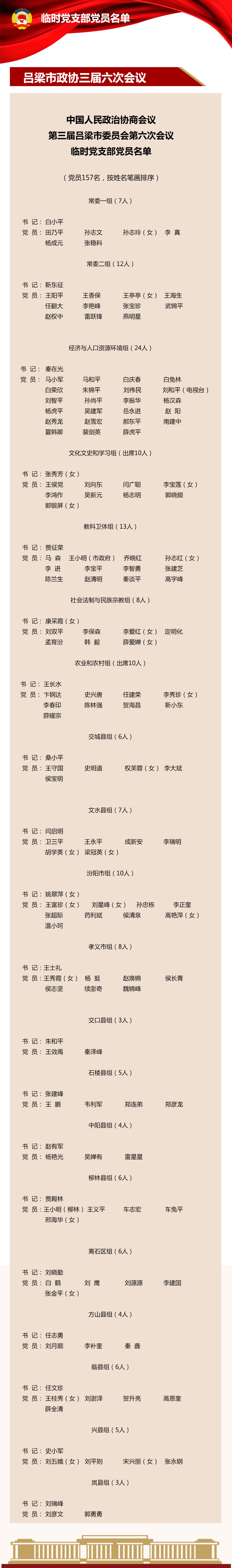 中国人民政治协商会议第三届吕梁市委员会第六次会议临时党支部党员名单