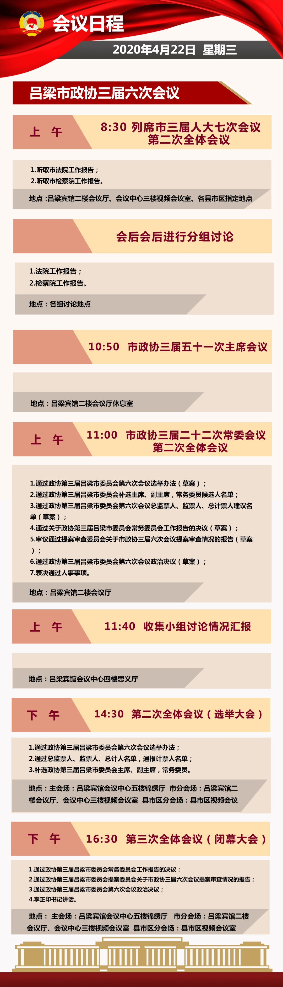 中国人民政治协商会议第三届吕梁市委员会第六次会议会议日程