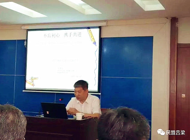 6月7日,民盟山西省委专职副主委、吕梁市政协副主席刘本旺应邀为市委党校优秀中青年干部培训班作了题为《不忘初心携手共进 ——善于学习 重视研究 紧跟时代的进步潮流》和《好机会走进来 新思维走上去——重视学习 善于研究 紧跟时代的进步潮流》的专题讲座,50余名学员聆听了辅导。