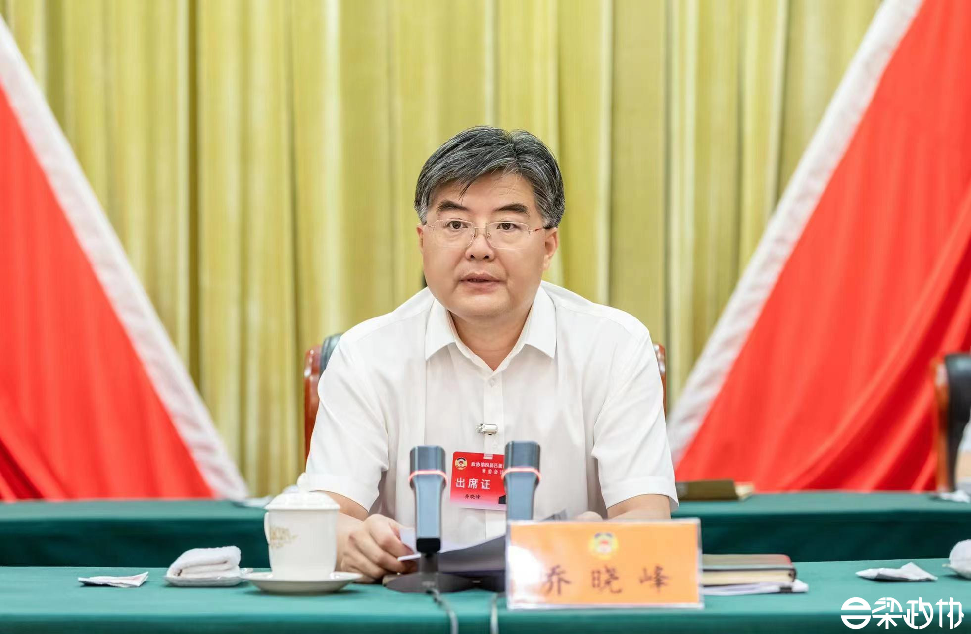 7月5日,市政协四届二次常委会开幕。市政协党组书记、主席乔晓峰主持会议。副市长任磊应邀出席会议。市政协副主席王阳平、薛爱平、郝金光、乔云、李慧义、刘晓春,秘书长杨成元出席会议。