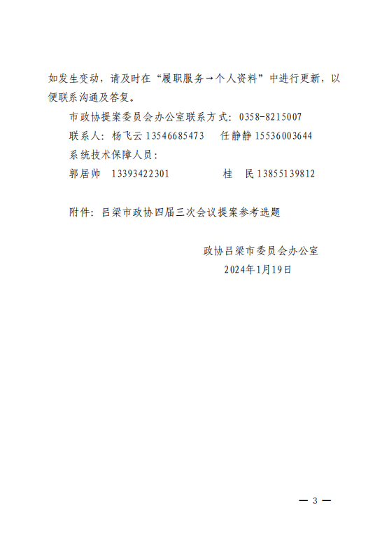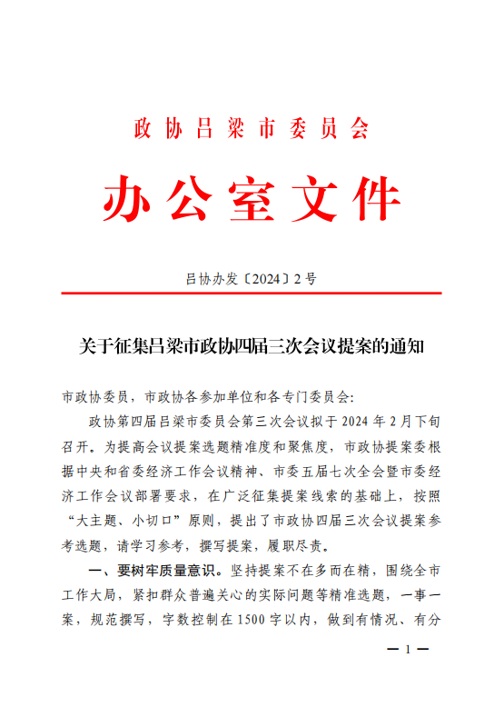 关于征集吕梁市政协四届三次会议提案的通知