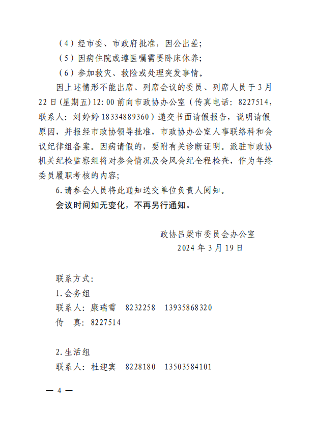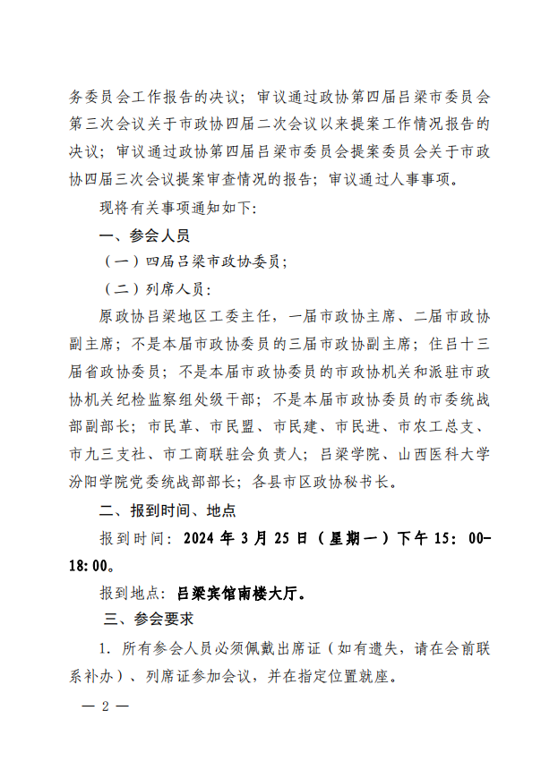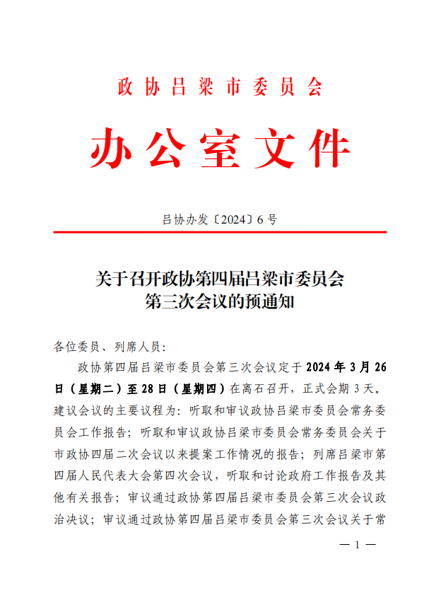 关于召开政协第四届吕梁市委员会第三次会议的预通知