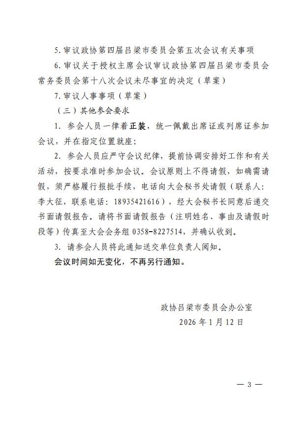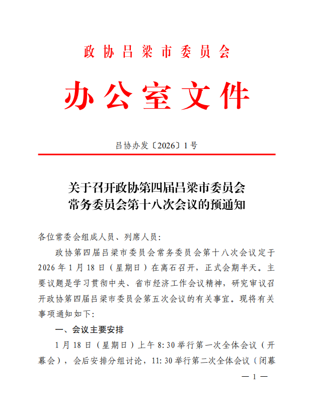 关于召开政协第四届吕梁市委员会常务委员会第十八次会议的预通知