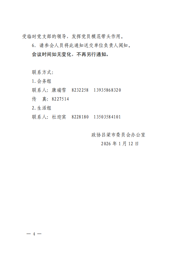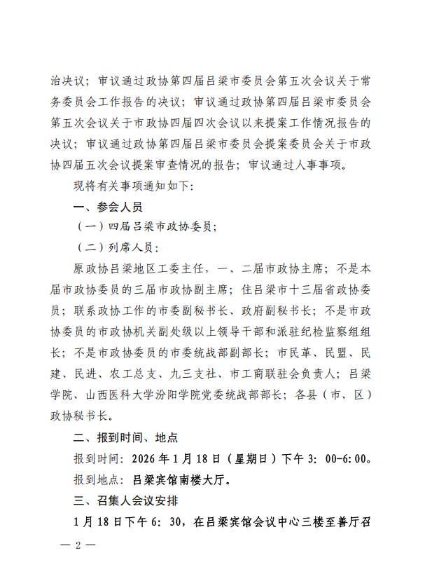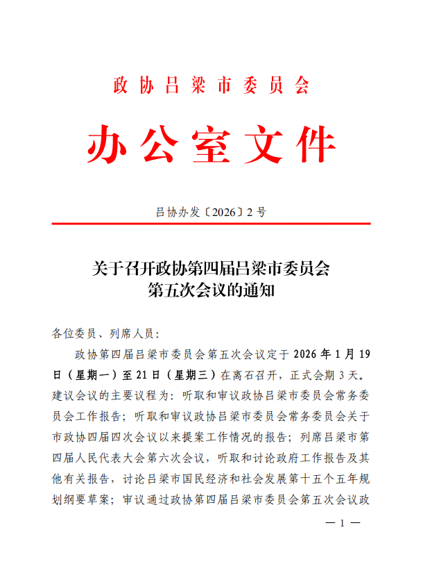 关于召开政协第四届吕梁市委员会 第五次会议的通知