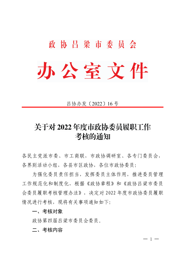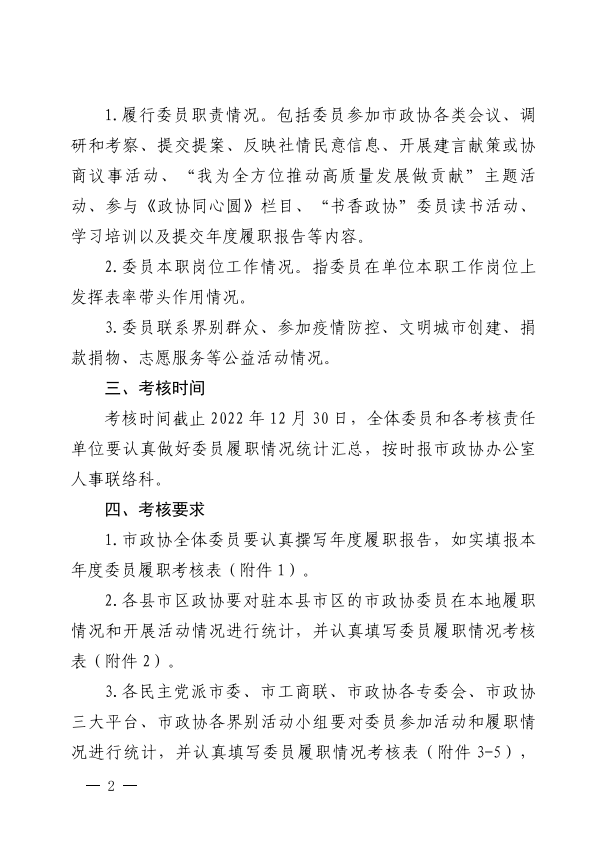 关于对2022年度市政协委员履职工作 考核的通知