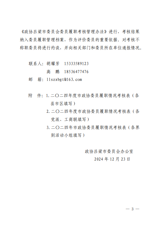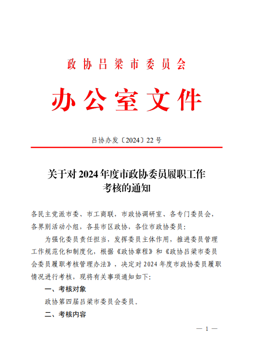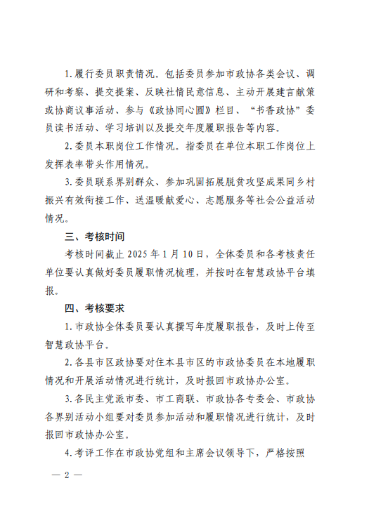 关于对2024年度市政协委员履职工作考核的通知